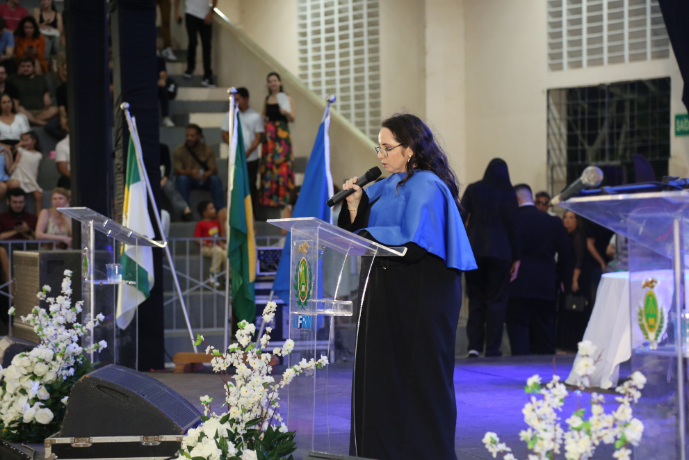 Em sua fala, a professora Ismênia Blavatsky, destacou a importância das relações humanas e do percurso formativo vivenciado ao longo da graduação. Segundo ela, mais do que a conquista do diploma, a jornada acadêmica representa um processo de amadurecimento pessoal e profissional.